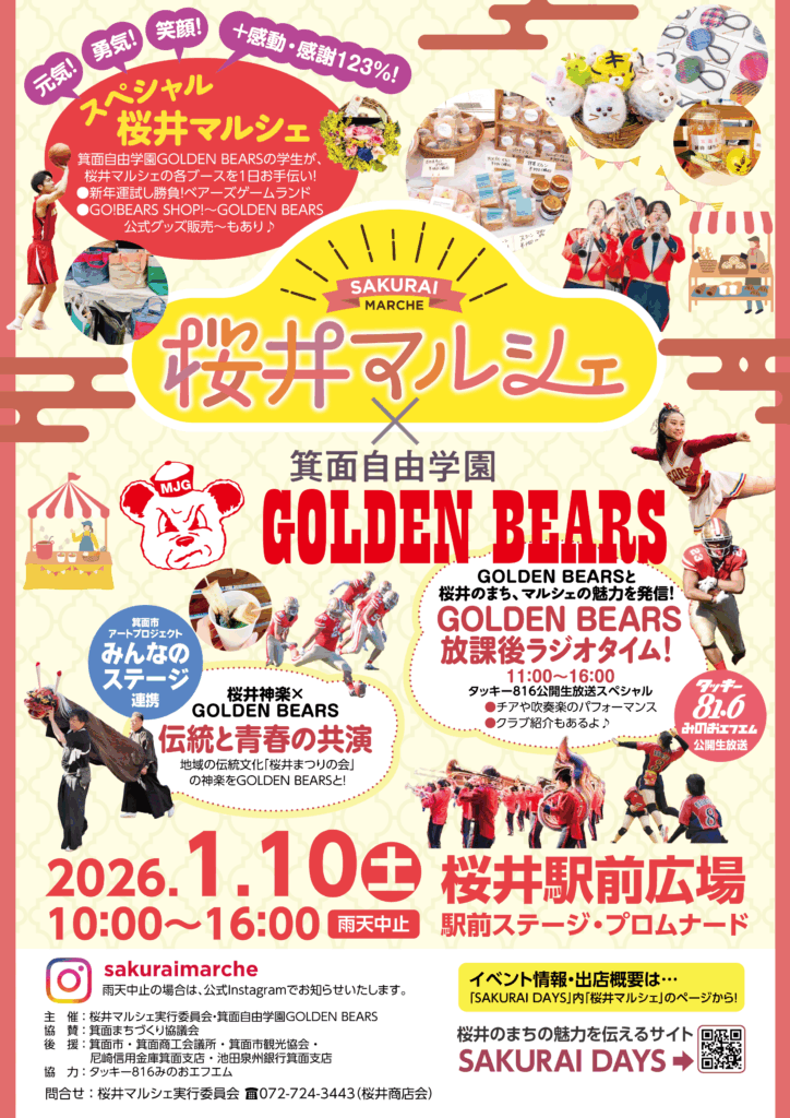 - 主 催:桜井マルシェ実行委員会×箕面自由学園GOLDEN BEARS