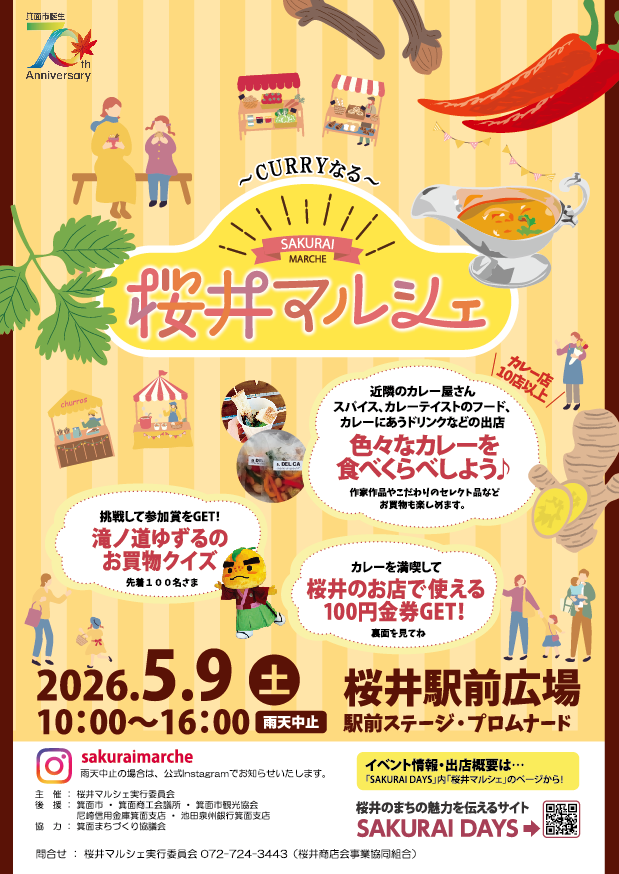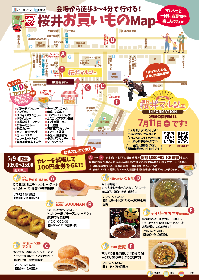 そして、駅周辺の6店でも当日限定のカレーメニューなどが登場!100円金券がもらえるお得な企画もありますので、チラシの裏面(下記)を要チェック!!